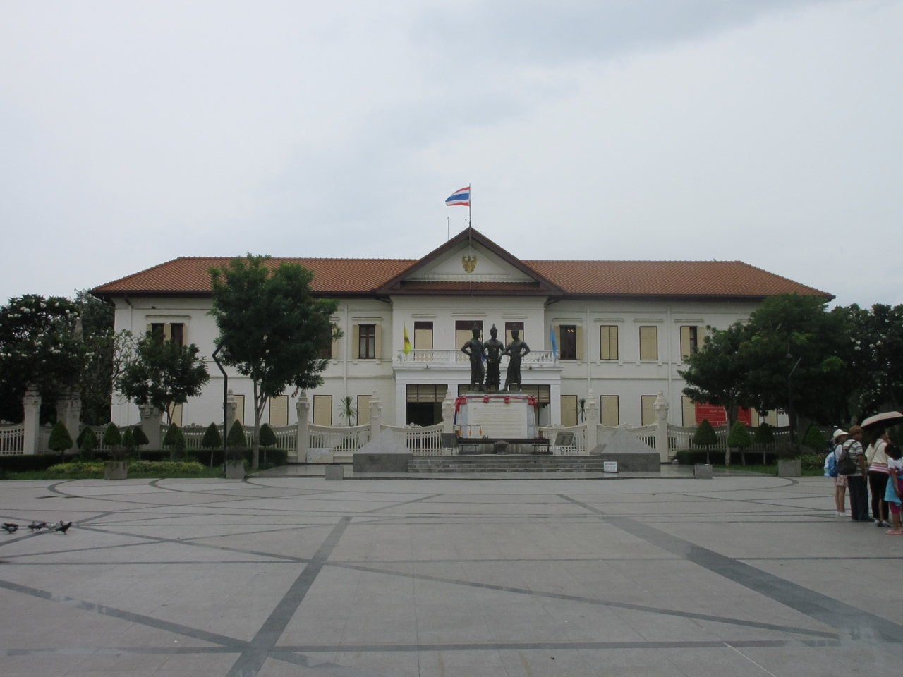 チェンマイ芸術文化センターの前にあります。この3人の像は、チェンマイ建設に関係したひとで、メンラーイ王、カムムアン王、ラームカムヘーン王の像になっています。それぞれ、チェンマイ王国の建国、建設に協力した人で、堂々とそびえたっています。日中は、休む人、物売りなどがいました。
