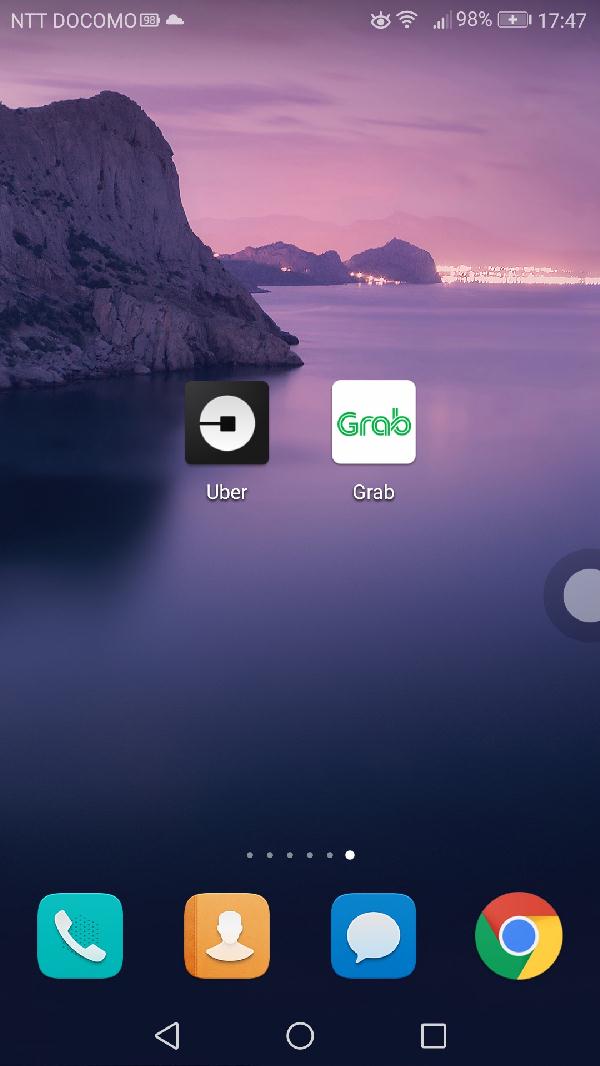 ホテルに帰るTaxi内でアプリを検索したら、UberとGrab Taxiが出たんでどちらもダウンロードしました。