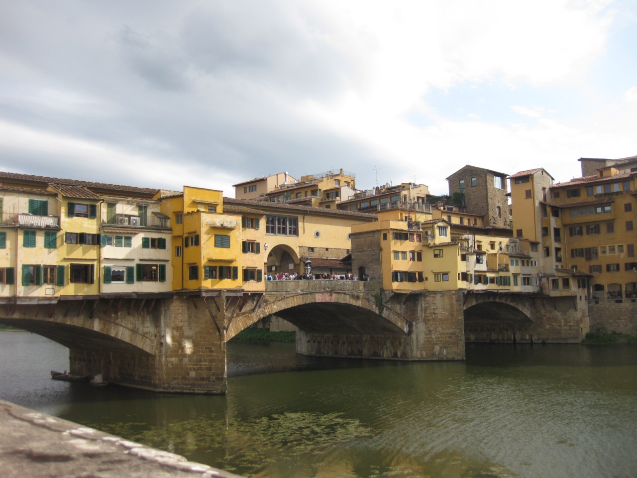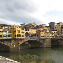 観光名所だけあってたくさんの人で賑わっています。橋の両側には宝石店が立ち並んでいますが、お店自体はどこも似たような感じで、特に惹かれるものはありませんでした。個人的には外側から橋を眺めている方が、趣を感じられよかったです。