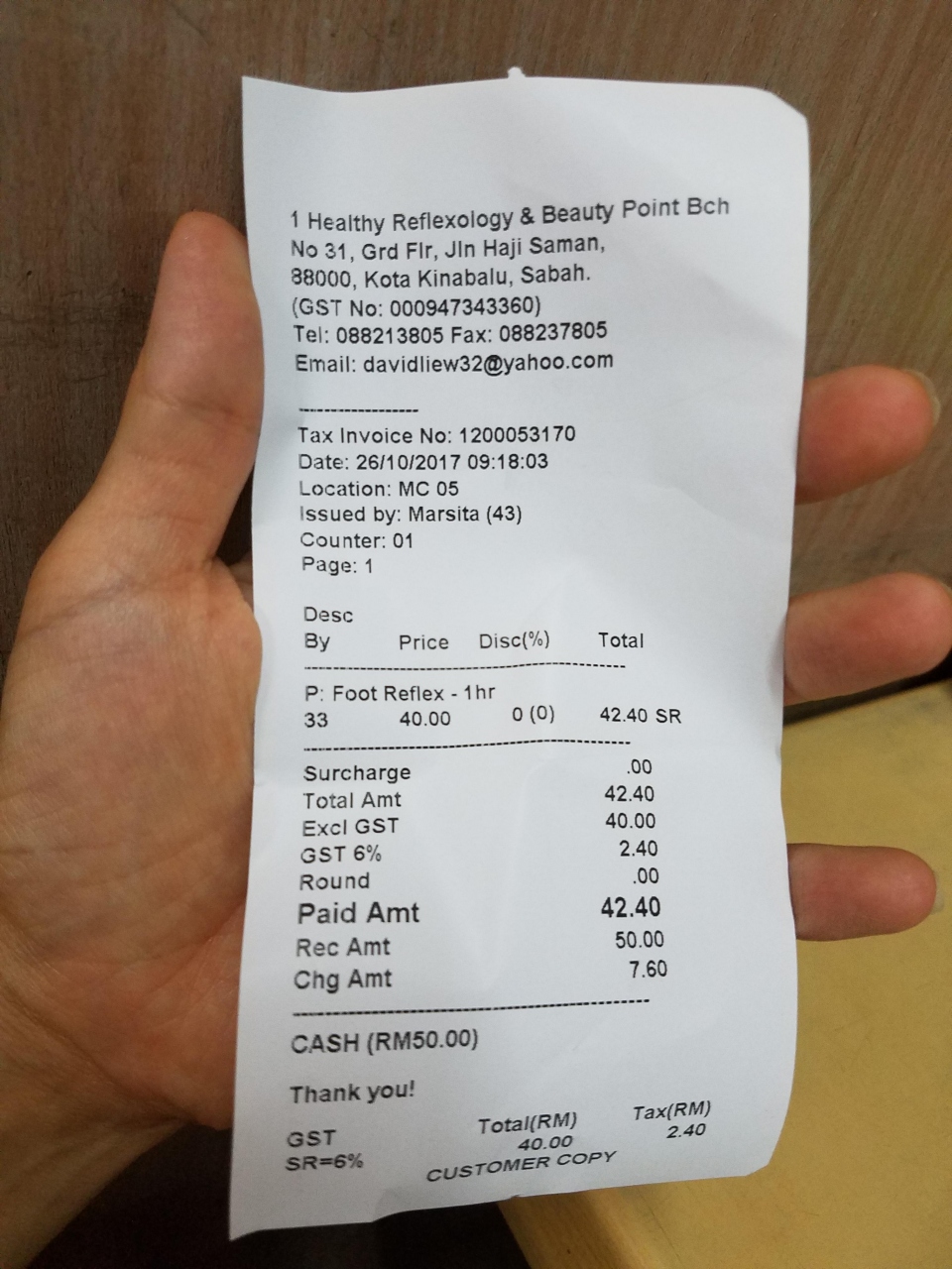 足マッサージ1時間42.20リンギットと破格。