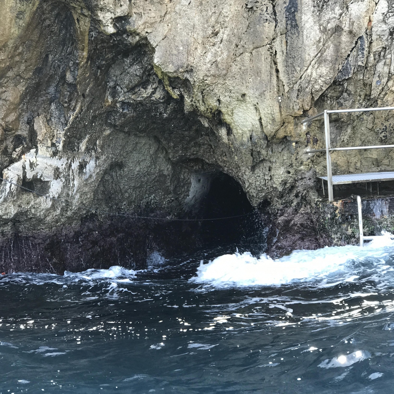 カプリで小さいボートに乗り換えて青の洞窟に向かうも・・・入れる状態じゃない