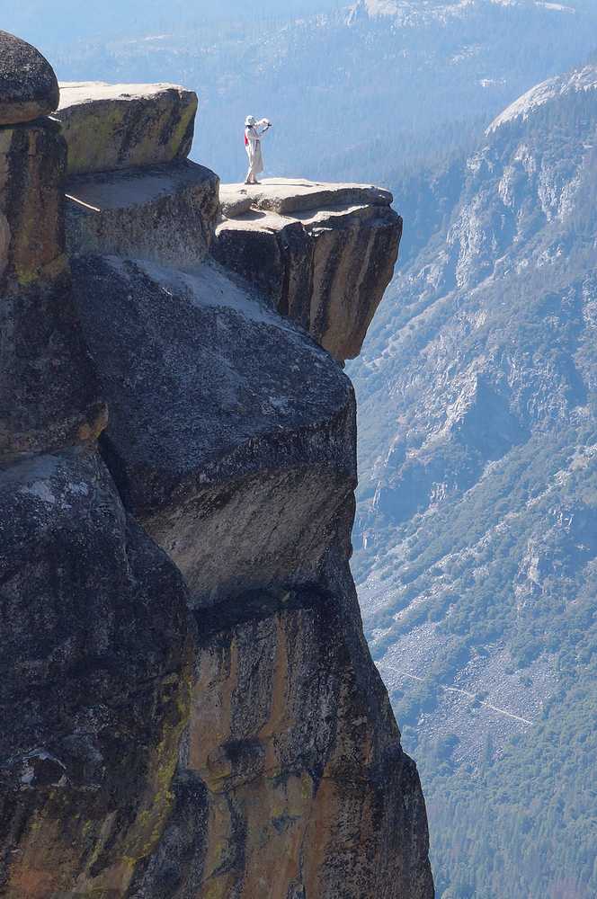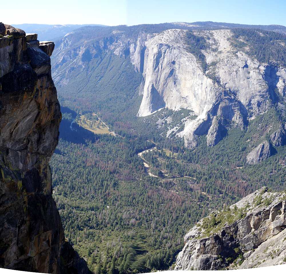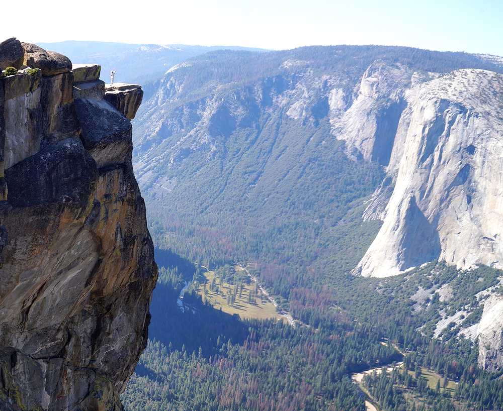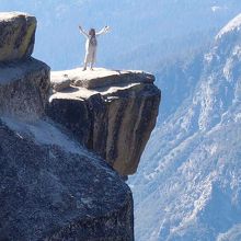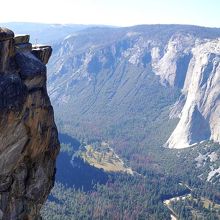 スリル満点なHanging Rock下にヨセミテバレーが広がります。