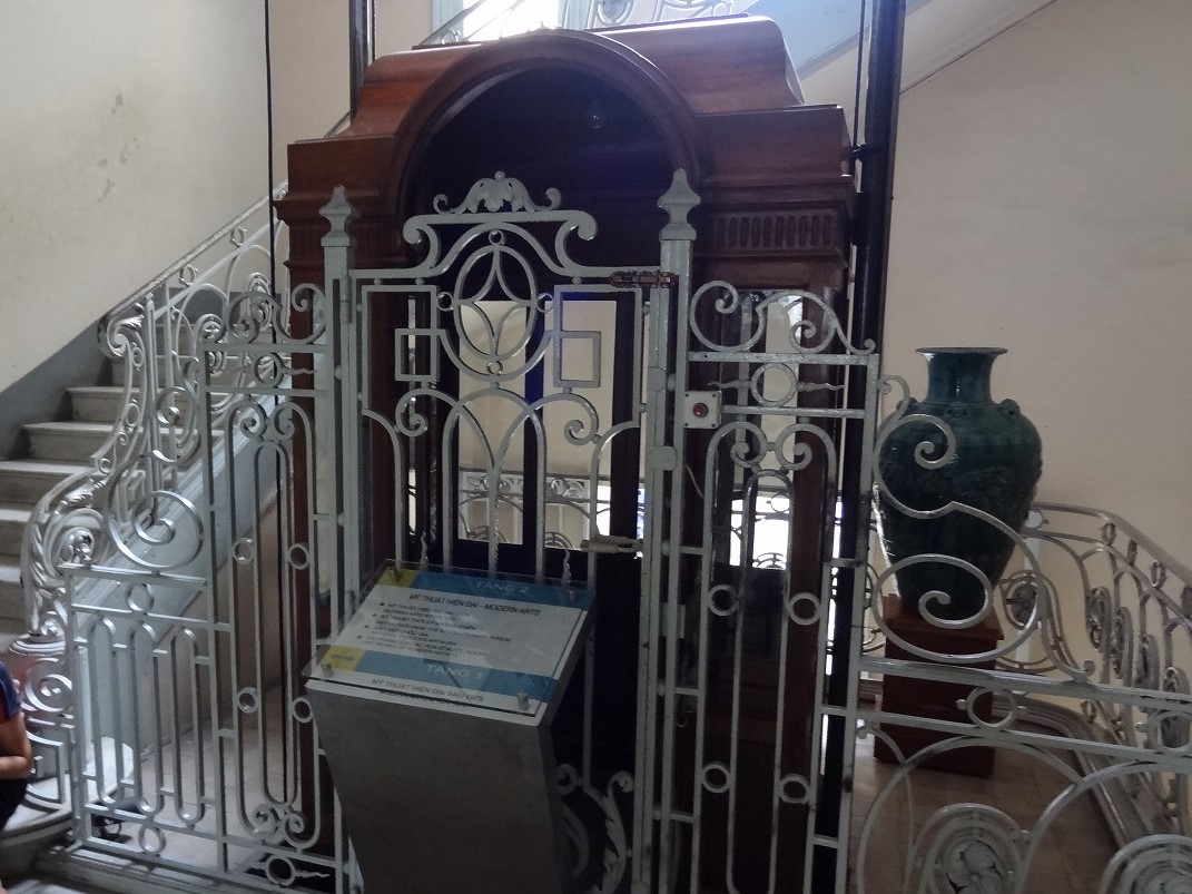ベンタイン市場近くにある「ホーチミン美術博物館」は、元は、サイゴンで有数の資産家の邸宅だったクリーム色の3階建ての建物で、ホーチミンで最も古いといわれる木製エレベーターもあります。そのエレベーターは現在は動いてはいないようで、また古い建物のため、エアコンもなく、暑い日はキツイですが、建物だけも見る価値のある歴史的建築だとた思います。