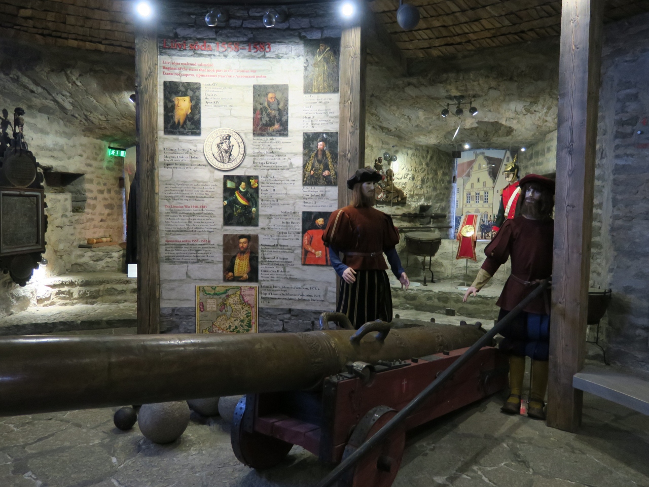 丘の上の城壁、ネッツイルトンから見ると、ずんぐりした塔に円錐等の赤い屋根の、中世そのものの建物が見えます。これが、キーク・イン・デ・キョクです。中は、防衛博物館になっていて、タリンカードまたは、入場料を払えば、こちらは自由に見学できます。旧市街の守りの様子や武具が展示されています。300年前の地下道に入るツアーは申し込みが必要です。