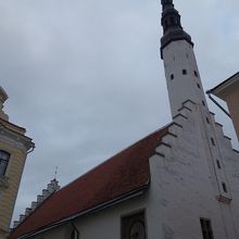 ラエコヤ広場の北側にある白い塔のある教会です。この教会で一番印象に残ったのは、外壁にある時計です。タリンで最も古い公共用の時計だそうです。花や緑、太陽なような形の刻まれたこの時計は、その古さでは無く、デザインの良さで、印象に残る時計です。内部に見ごたえのある、祭壇や彫刻があります。
