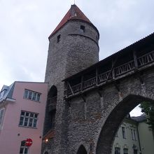 旧市街の西側出入り口にあたる場所にあります。旧市街の東側は、建物と城壁の迫っているところが多く、小路から城壁を見上げながらという場所が多かったですが、こちらに来ると、少し離れたところから、城壁と見張りの塔を眺めることができます。より、城壁が町を囲んで知る様子を実感することができます。