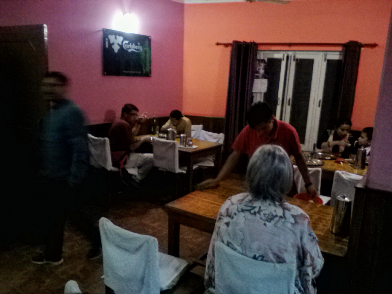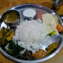 ダルバートの大人気店。メニューは3つのみ。ベジ(220Rs)とチキン(350Rs)、マトン(350Rs)。とてもお得な値段設定なのでせっかくならチキンかマトンをおすすめしますが節約型の旅行者である私はベジをオーダー。その辺のツーリスト用の安レストランではないおしゃれな盛り付けです。タルカリ(おかず)の種類も多いし、ダルにコクがありとてもおいしいです。ヨーグルト、せんべい、生野菜以外はおかわり自由です。ビールもあります。
