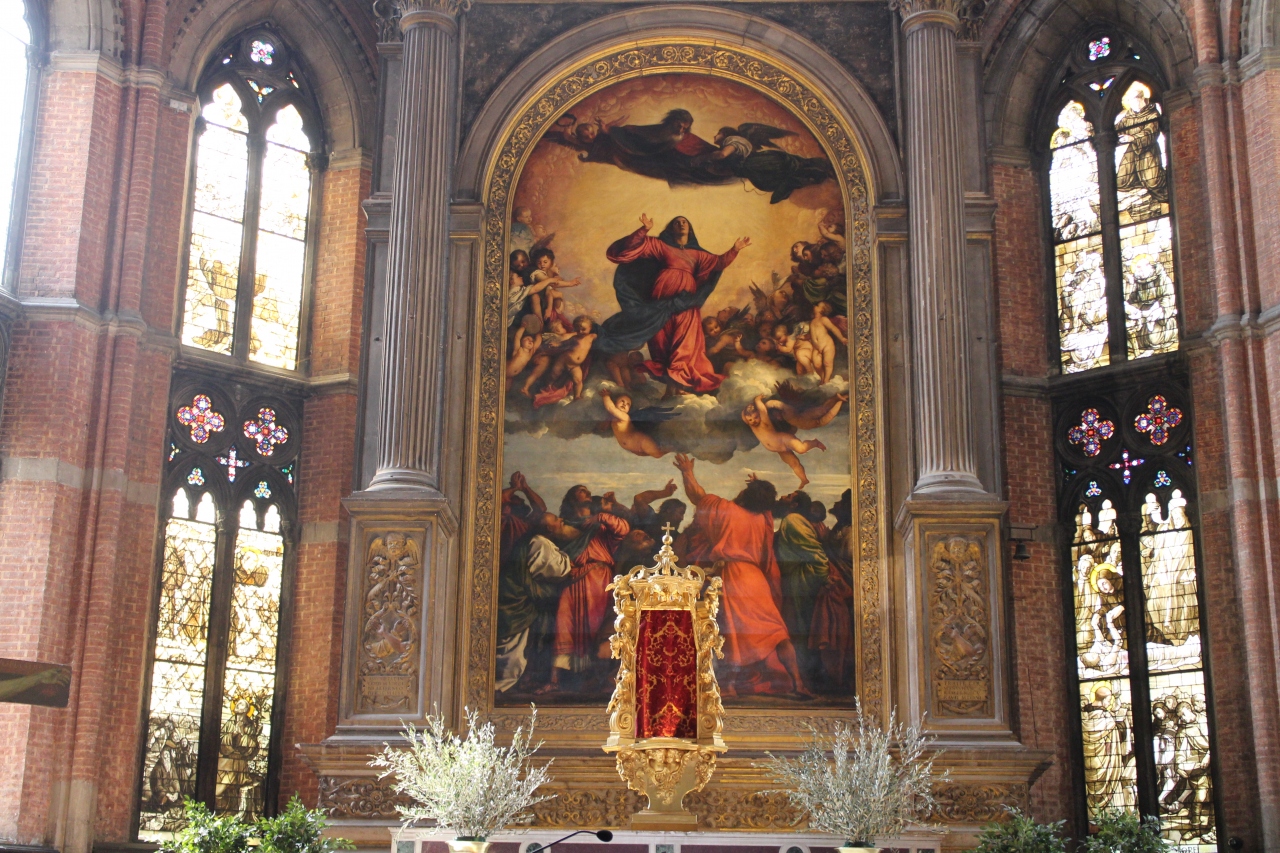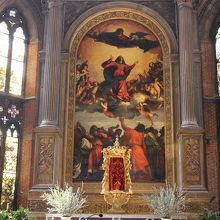 ヴェネツィア派で最も重要な画家の一人であるティツィアーノ・ヴェチェッリオが描いた「聖母被昇天」が主祭壇にあり 大きな宗教画にうっとりとしてしまいます