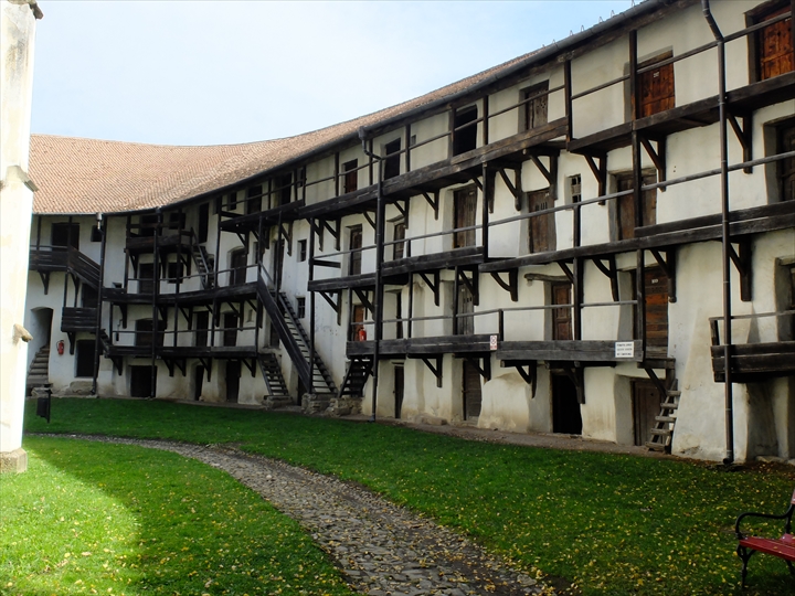 教会を中心に丸く囲まれた高さ12mの防壁内側は3~4階建てになっていて、200を優に超える部屋があり、敵の来襲があった時には村民が立て籠もれる構造。