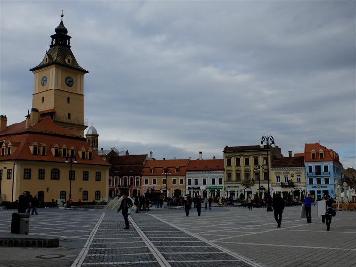 石畳の広場西側にはブラショフのランドマークになっている黒の教会、広場中央には噴水や歴史博物館(旧市庁舎)があって、ブラショフを訪れる観光客なら誰もが一度は立ち寄る場所だと思います。