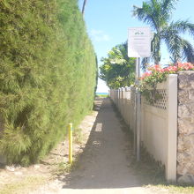 10:36 「オーシャンアクセス4」と記載されている小径を抜けると、広い砂浜が広がっていました!