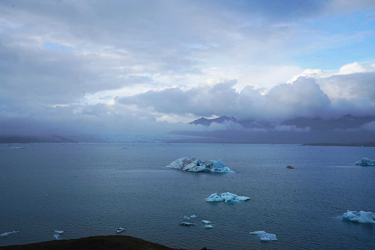 ヨークルスアゥルロゥン氷河湖の近く