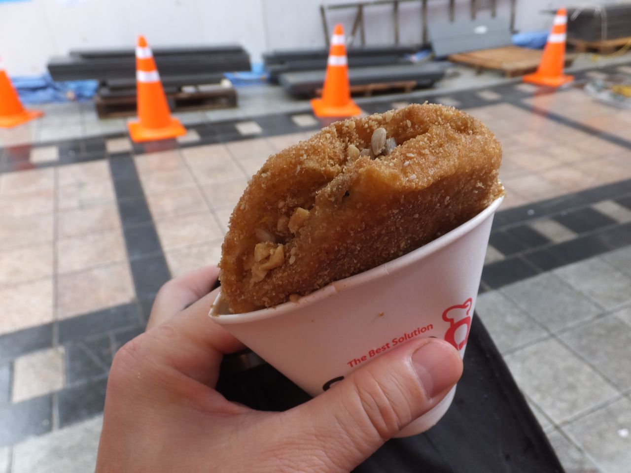 国際市場の中の広場というか交差点。屋台の出店がいっぱい。その中でもホットクという揚げパンのようなものにひまわりの種か松の実のようなものを挟んだお菓子を購入。素朴な味わいの甘いお菓子でした。