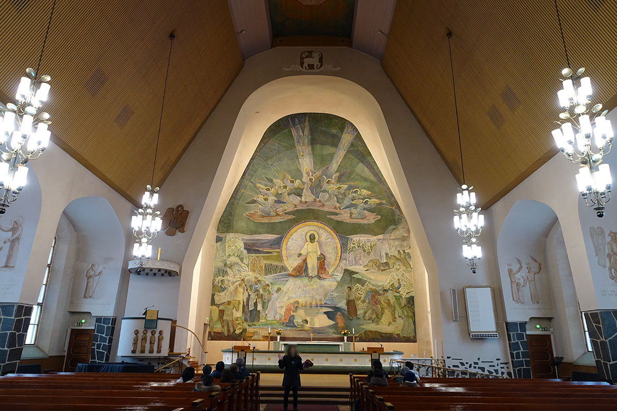 夏のシーズンはフリーの観光客にもオープンされているようですが,冬場は団体客などを除いて,中に入れないようです。中の正面のフレスコ画もその反対側の大きなパイプオルガンもなかなか良かったです。本当はフリーで来て,もっとゆっくり見たかったです。