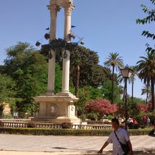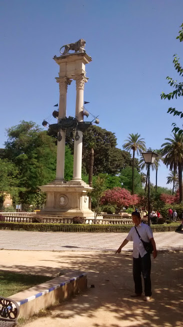 コロンブスのモニュメントは、南国風植物の多いムリーリョ公園内にあります。モニュメントの真ん中に、船が突き刺さった感じであり、興味深かったでした。スペイン帝国の新大陸での海を通じて行った征服の歴史を象徴しているのでしょう。