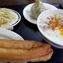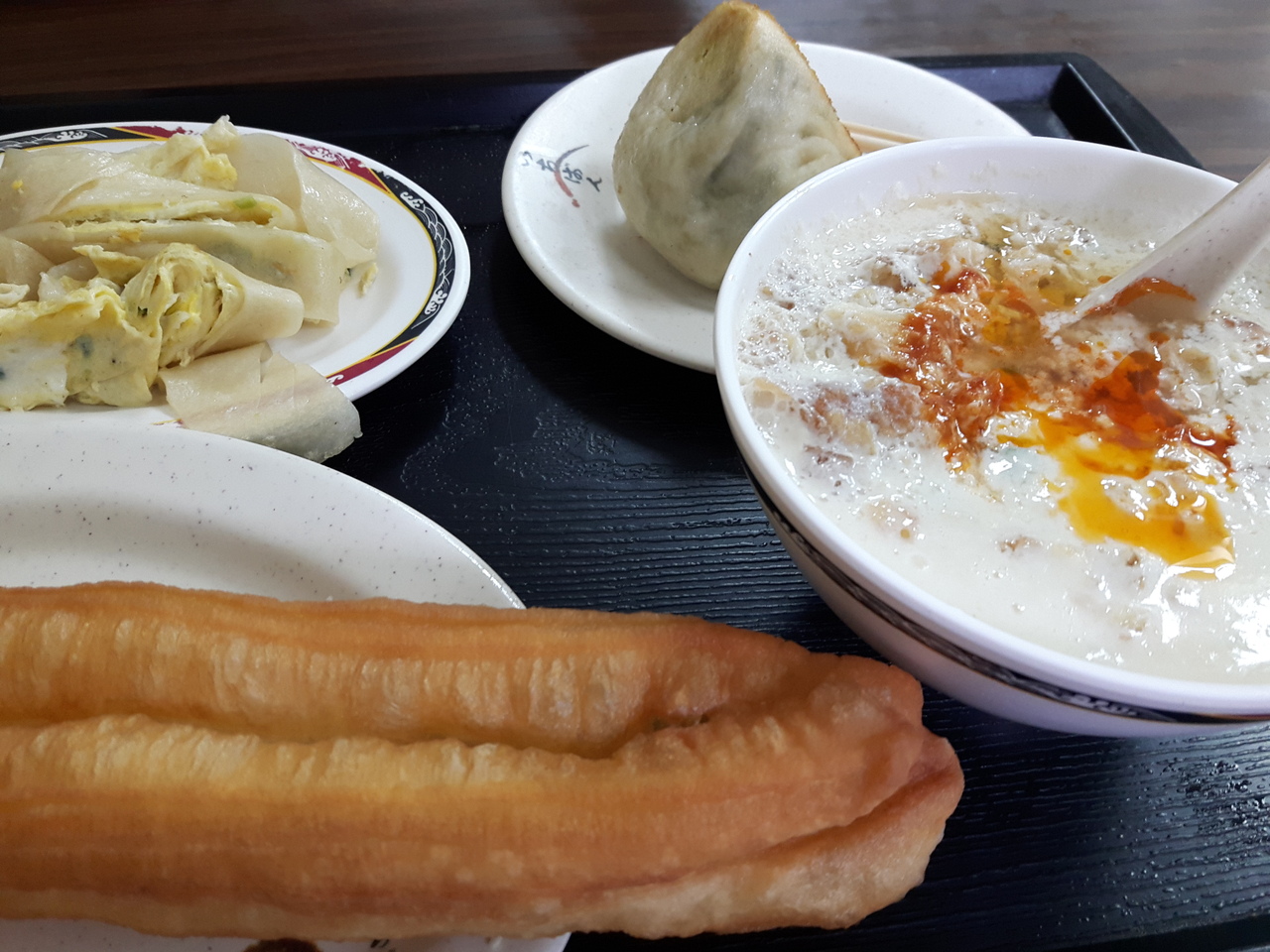 日本人を含む観光客にももちろん人気ですが、見ていると地元の人もかなり来ている様子で、いつきても列が途切れることはありません。とはいえ、どんどん注文をとっていくのでそんなに待つわけではなく、10分くらいで座れました。甘い豆漿はドリンクとして、塩味の豆漿は油条と。餅米のおにぎり、卵のクレープ状のダンピンとどれも美味しくおすすめです。