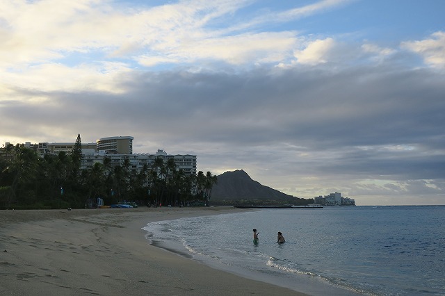 いつもヒルトン村滞在なので、このビーチ沿いを歩いてDFSなどに向かいます。ワイキキの中ではビーチの幅もしっかりあるし、公園もあるし、海に入るだけでなく散歩にも良いビーチです。ただ、深夜や早朝にはビーチでホームレスの人が寝ていたりもするので、そこは注意が必要です。
