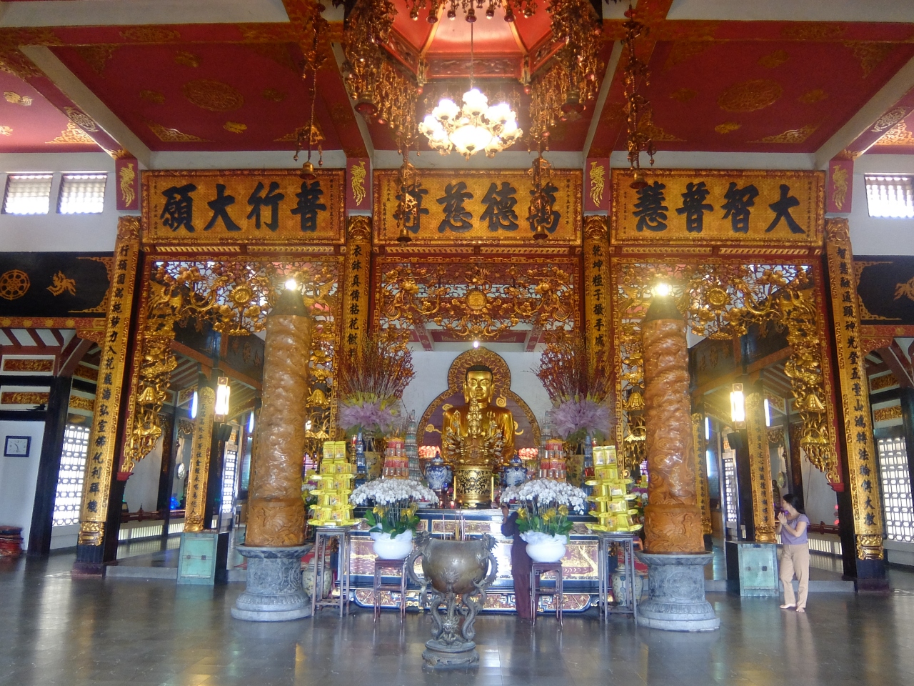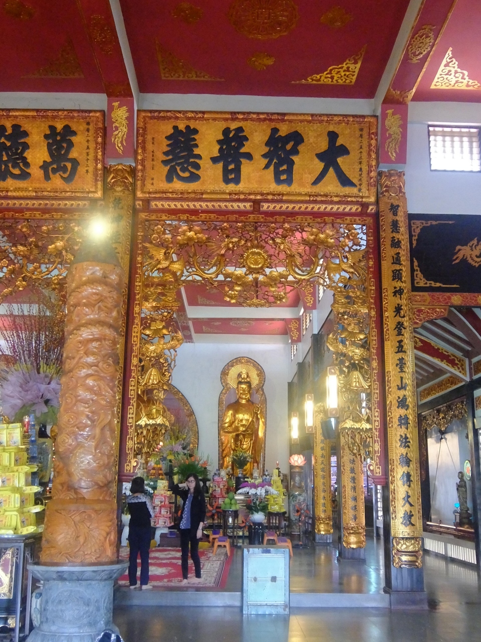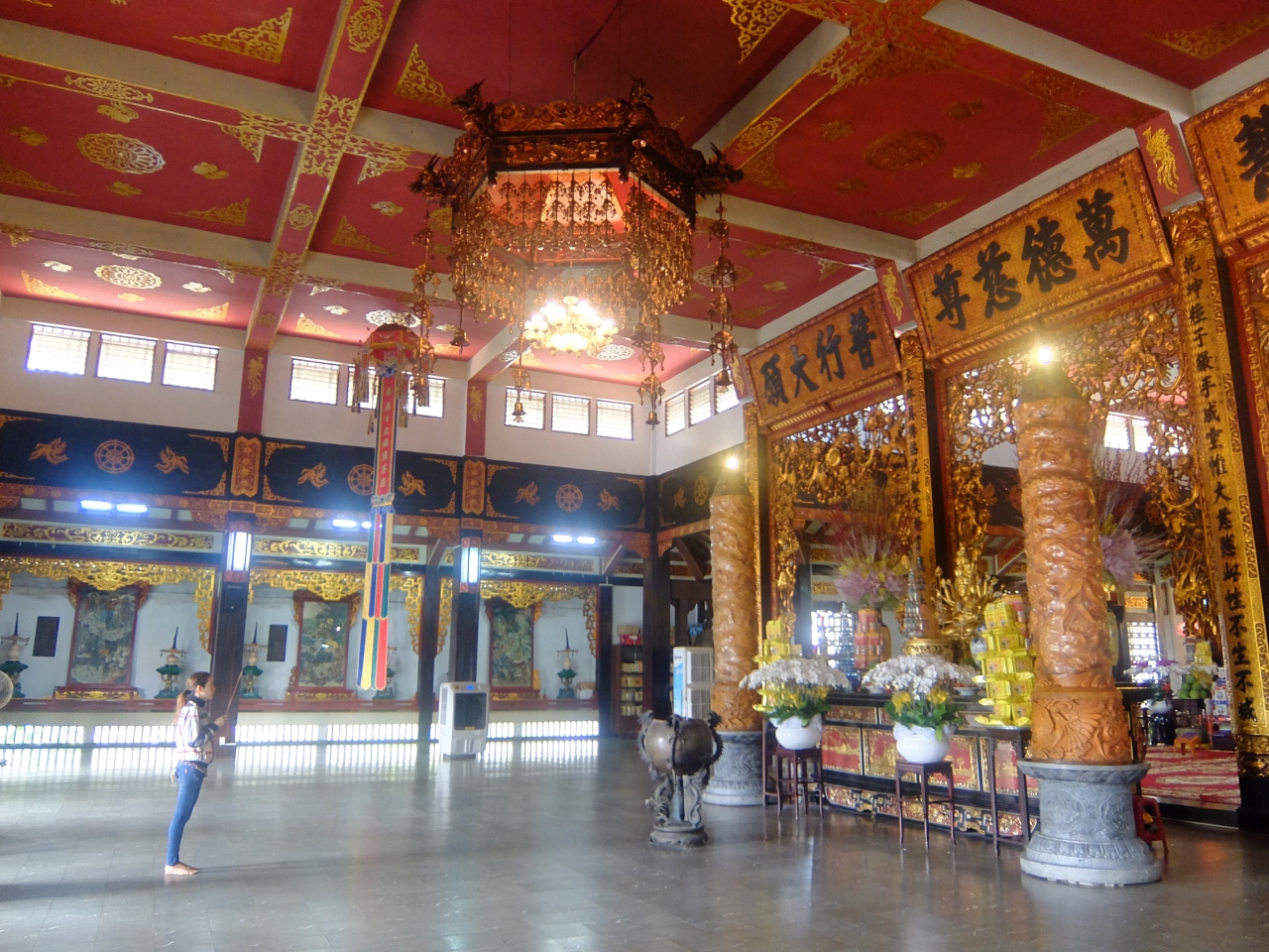 日本と縁が有る大きなお寺です。鐘楼の鐘は日本のお寺から寄贈された物で日本語が刻まれています。本堂の外に大きな観音様、高い七重の塔、舎利塔が有ります。越南ではよく見かける光景ですが綺麗な娘さんの撮影が行われています。モデルさんなのでしょうか。