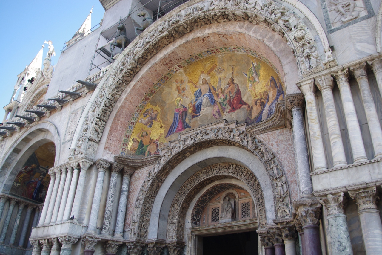 正面の金色モザイクがひときわ目立つサンマルコ寺院。