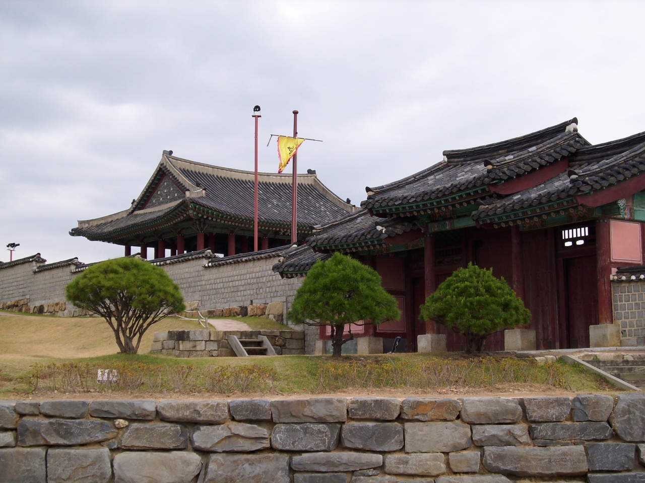 兵士が訓練した所として錬武台とも呼ばれ、華城の施設物の中で最も偉容を誇るといわれる建物です。屋根は八作屋根の形式で、四方が眺められるように壁が無く、丘の上に一面芝生が広がっています。そこには韓国式弓道の練習場があり有料で体験も出来ました。各施設の復元も進んでいる様で、整備されていくのが楽しみです。