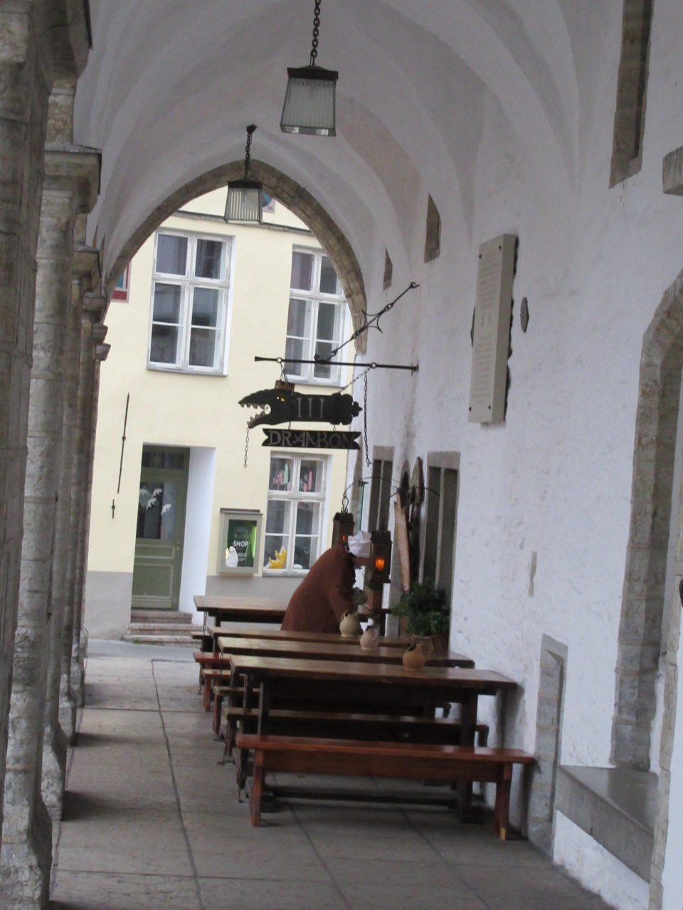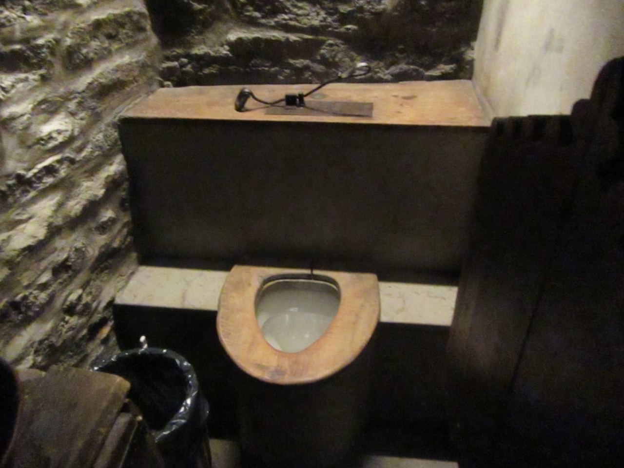 旧市庁舎の1階にある中世の雰囲気たっぷりのセルフのカフェです。エルクのスープが一押しとの情報を得て、ミートパイと共に注文しました。レジでお金を払い、料理を受け取ったら好きな席に座って食べます。スプーンは付いてきません。直接器に口を付けてスープを飲むのが中世風だそうです。味は普通。店内は暗く、スープの中身も分からない程でした。こちらのトイレは中世風で面白く、思わず写真を撮ってしまいました。