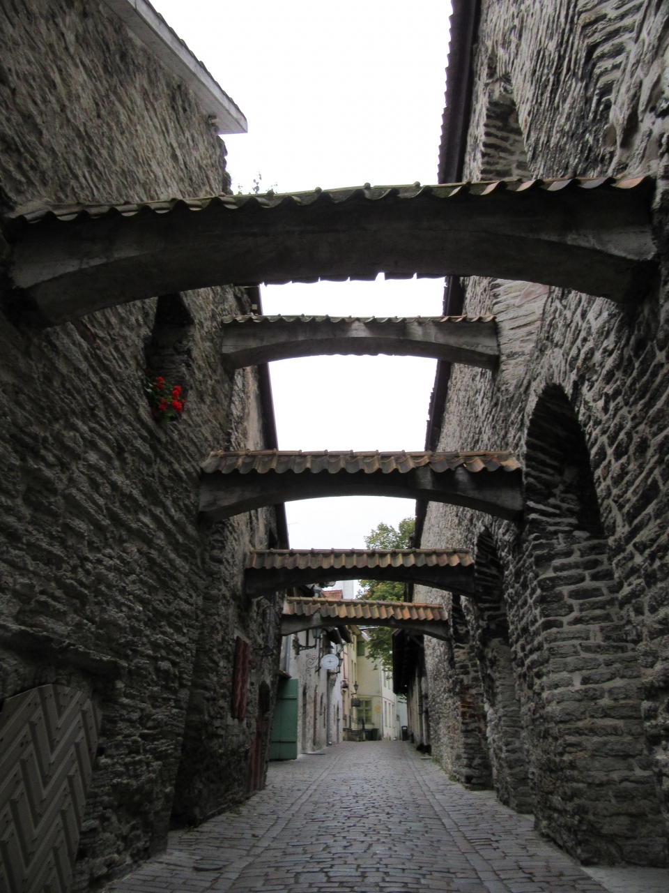 かつてあった聖カタリーナ教会の裏手にある小径で、石造りの壁と壁を支えるアーチが連なる中世の雰囲気たっぷりの小道です。