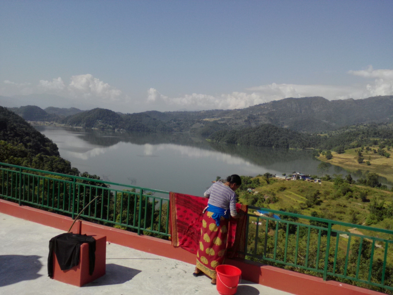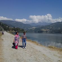 レイクサイド、バラヒ寺院行きボート乗り場前のバススタンドからベグナス湖行きのバスか出ています。朝5:30から30分毎、50Rs。このバスはレイクサイドロードを南下しサヒド・チョーク、ムスタン・チョーク、空港前、プリティビ・チョーク、ローカルバスパーク前を通って行くので各所でも乗れます。私はムスタン・チョークから乗車、所要50分で終点のベグナス湖近くのバススタンドに到着。ベグナス湖までは徒歩約5分、その途中に商店、レストラン、ホテルなどがあります。ベグナス湖自体はただの大きな貯水池、天気がよければアンナプルナ連峰が眺められますがボートに乗るかレストランで魚料理でも食べなければ秒殺スポットです。ベグナス湖と隣りのルパ湖を見渡せるビューポイントがあると聞いたので行って見ることに。「スンダリ・ダラ」という所でバススタンドからバスが出ています。所要約10分、20Rs。ここは2つの湖の間の一番狭い所で山の上の尾根にビュータワーが建っています。ショボいくせして入場料が必要で外国人は30Rs。すぐ近くにはレストランからありランチをしました。ベジチョウメン80Rs。このレストランの屋上からの眺めもいいです。タワーから100mほど戻った所にルパ湖畔に下りられる小道もあります。帰りも簡単にバスが捕まりますが歩きました。途中、ベグナス湖寄りには裏道もあり、歩くならこちらの方のが楽しいです。バススタンドまでは50分ほどです。