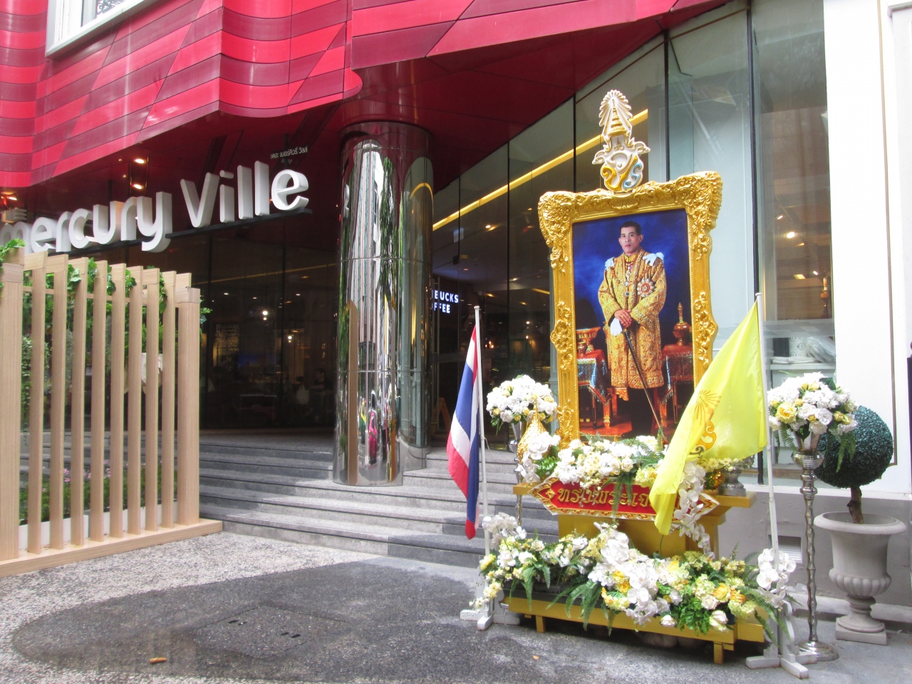 ザ マーキュリー ヴィレのエントランスに新ワチラロンコン国王の写真が飾られていました。2016年はプミポン国王のご逝去に際して、街全体が自粛ムードで暗い感じでしたが、約1年が過ぎて新しい国の始まりを感じる雰囲気になっていました。