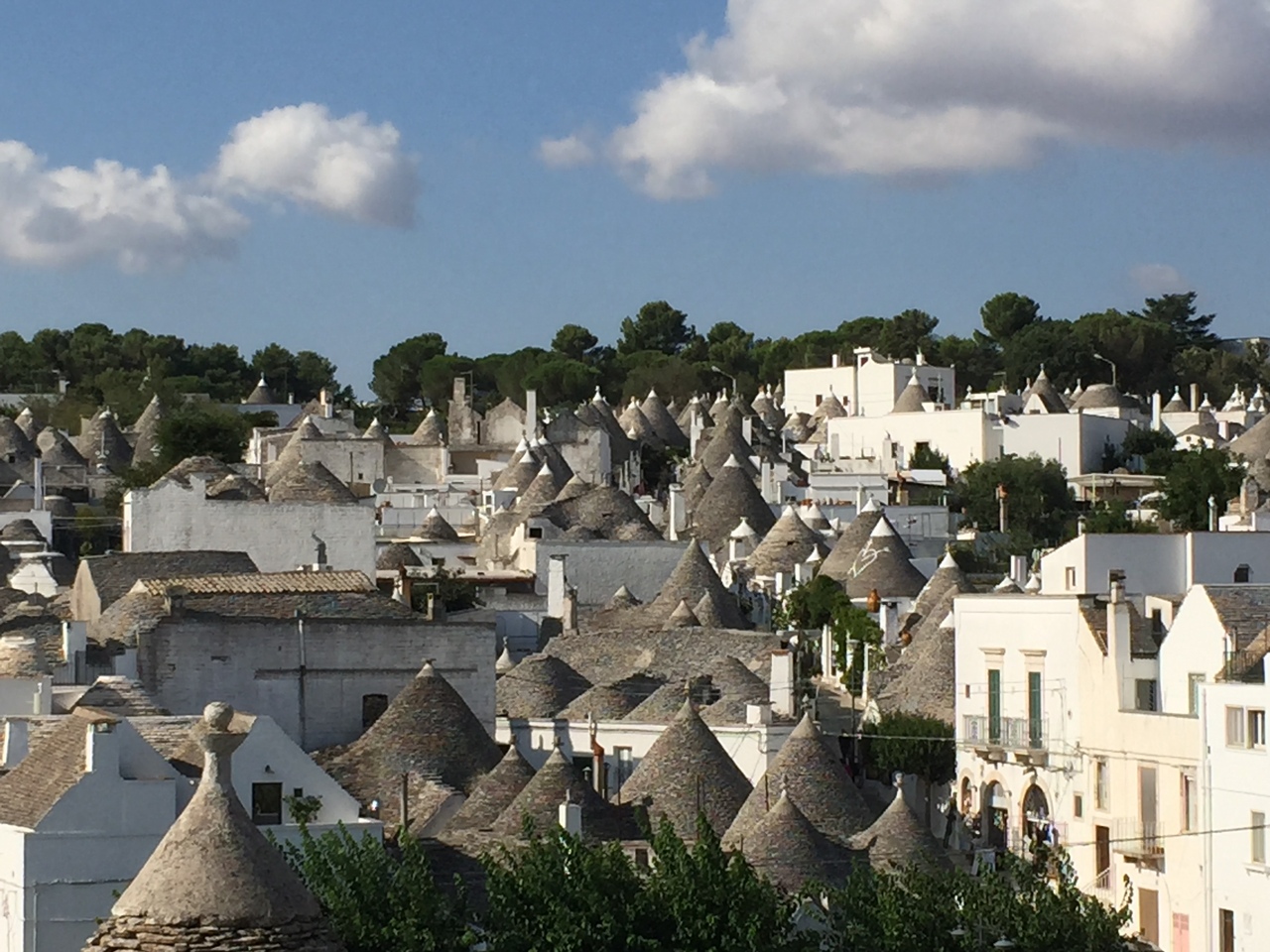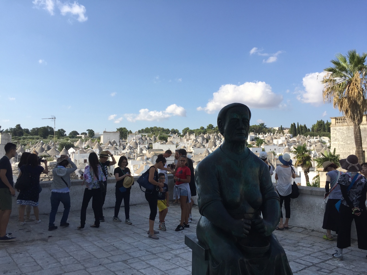 ポポロ広場に接していて、谷を挟んだ反対側の商業地区にあるトゥルッリ群を眺める展望台のような公園です。広くはありませんが、アルベロベッロの街がよくわかる場所です。この公園の脇の階段を降りて、商業地区に向かいました。