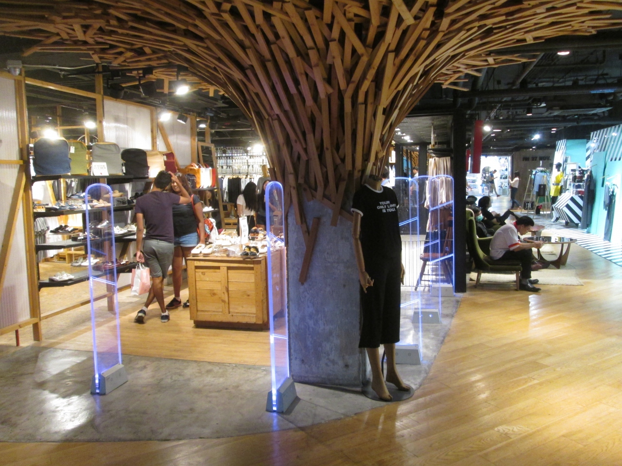 サヤーム センターの3階にある専門店のひとつです。専門店の多いショッピングセンターのなかでひときわ目立つ店内でした。木床のあるフロアにあわせて凝ったデザインの木が置かれており、種々のファッション、雑貨の最新商品を扱っていました。