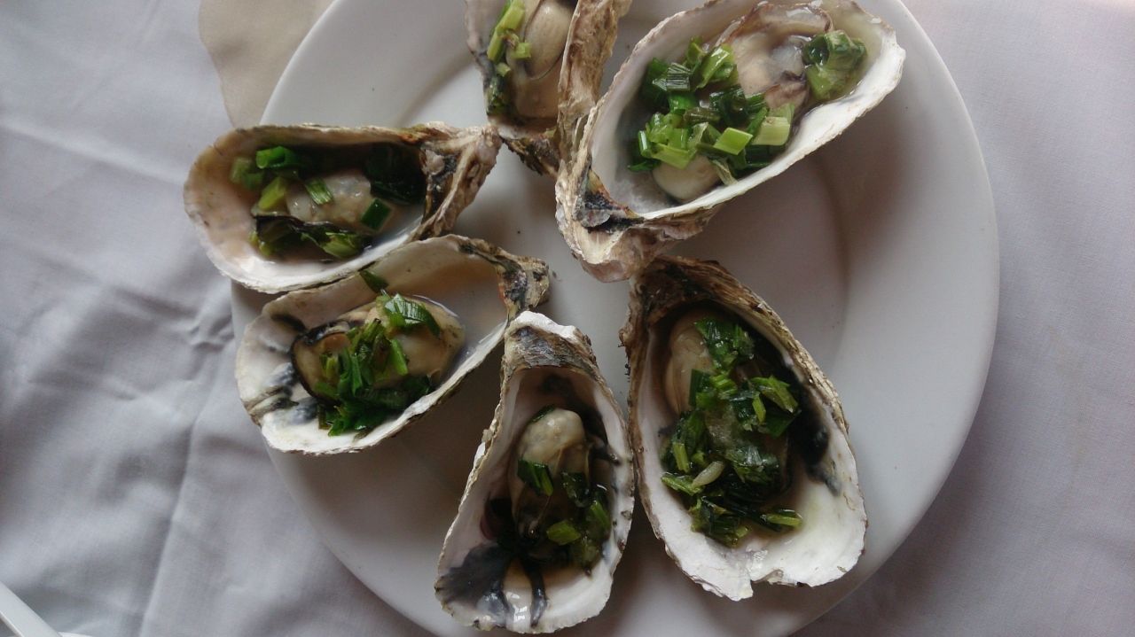 フェリーの中で 昼食を取りながら デッキに出て写真と忙しく 船には 新鮮なシャコ、牡蠣などが売りに来て すぐに調理して頂きました。