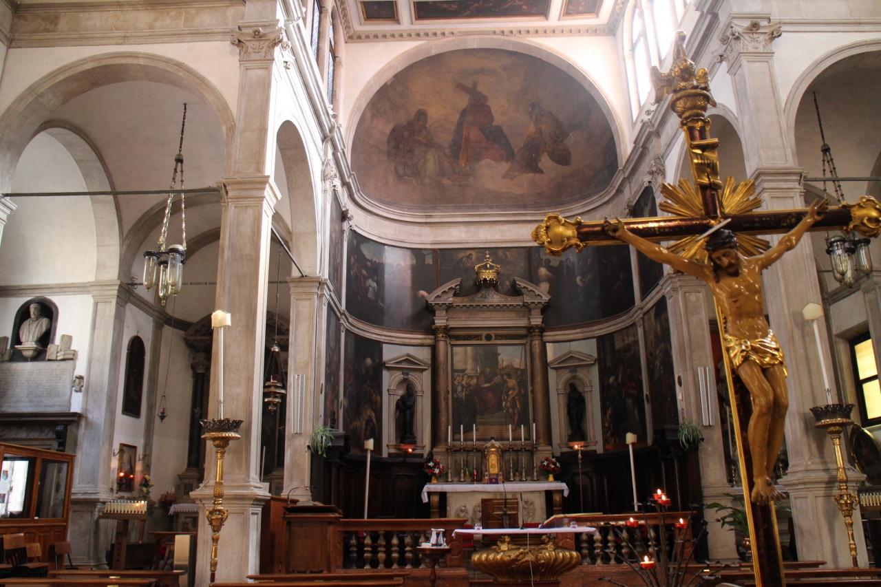 主祭壇の上のフレスコ画がとても印象的で歴史を感じました