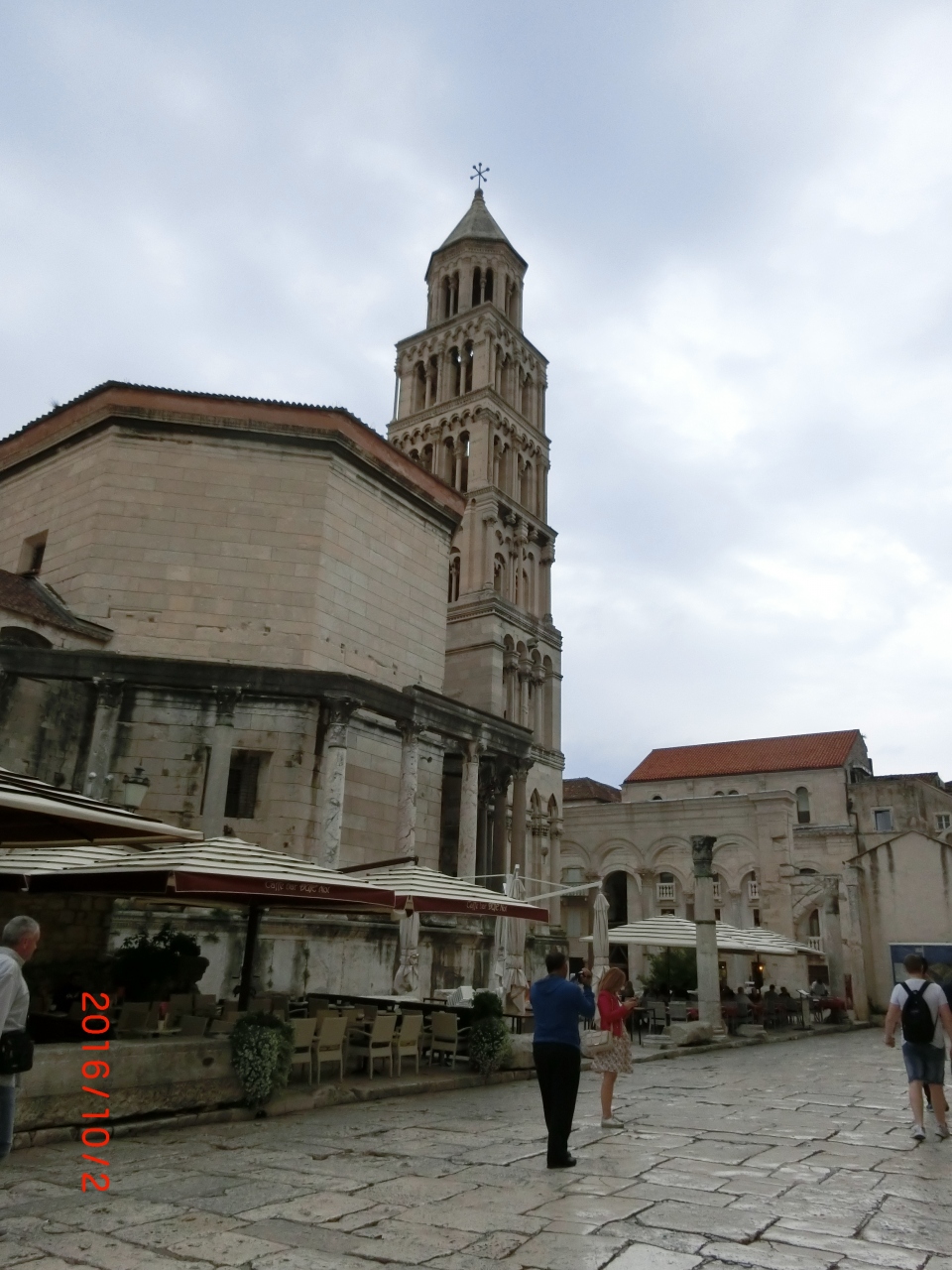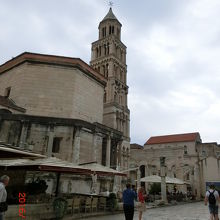 大聖堂の階段には観光客が腰掛けて休んでいます。