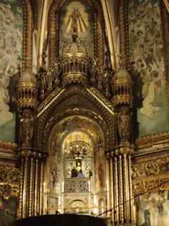 モンセラットの修道院の教会堂に祀られている黒いマリア像を見るには、正面の右手側から入りますが、けっこう人が並んで行列になっていました。ただ以外と進みは早く、14時半頃並んで20分くらいでマリア様を見ることができました。この地で発見されたらしく、確かに黒いマリア様が黒いキリストを抱いていました。