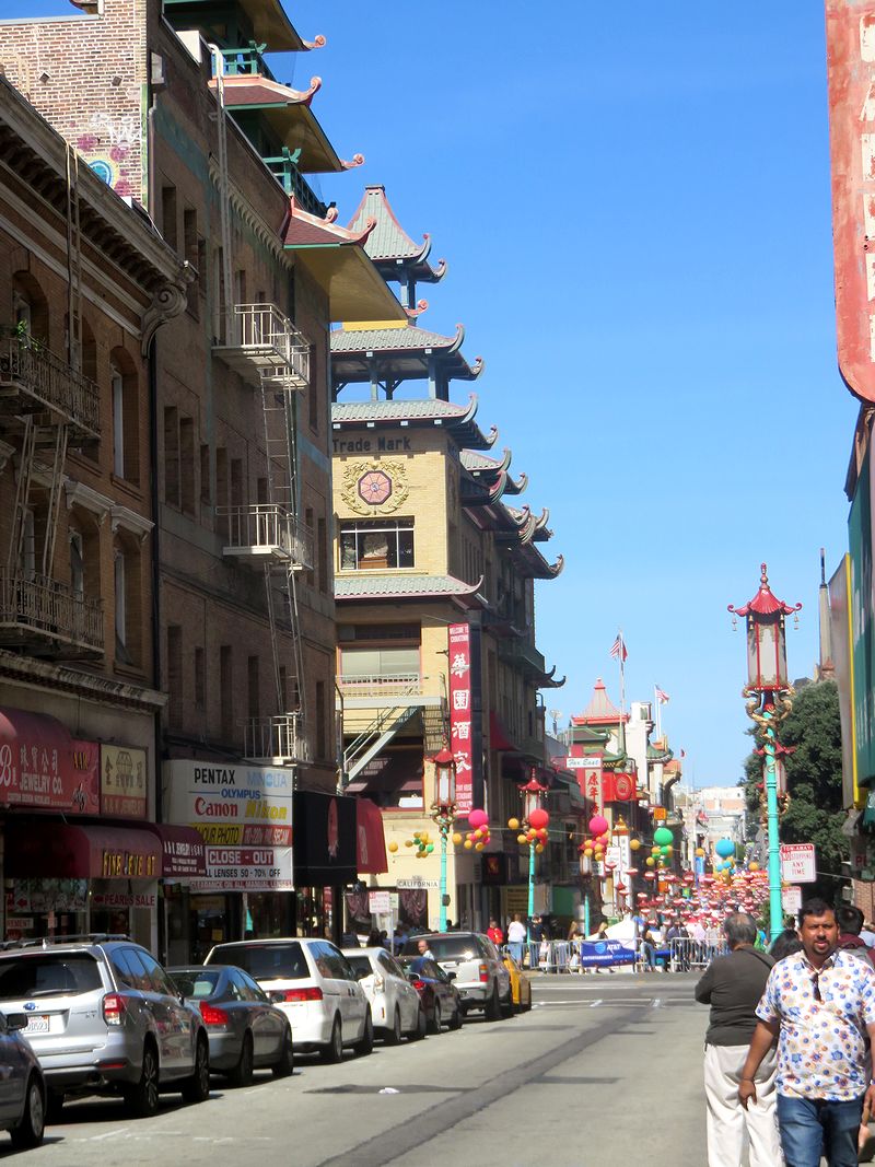 10月の初めにUnion Square からフィッシャーマンズワーフの向かう途中で、ここを訪れました。ユニオンスクエアからは歩いてすぐでした。ちょうど国慶節がはじまったばかりで、ドラゴンゲートを入った街中は車が進入禁止になっていて、屋台が多く立ち並び、大勢の中国人で賑わっていました。道沿いの店を覗きながら2丁ほど歩いてから、フィッシャーマンズワーフに向かうことにして、お店の中国人の女主人にバス停を尋ねたら、Stockton Streetにあると教えられました。急な坂道を登っていった先のバス停で80番のバスを待っていましたが、待てど暮らせど違うバスばかり。30分くらいしてからたまりかねて他の人に尋ねなおしたら、ここではなく逆の方向にあるMontgomery Street(Columbus Av.につづく)から出ているとのこと。通りの向かい側のバス停には逆方向の80番のバスが止まっていきましたが、行きと帰りは違う道を通っていることなど、考えがおよびませんでした。あわてて移動し、無事80番のバスに乗れました。一人だけの情報に頼ることなく、複数の人に尋ねてみる必要性を痛感した出来事でした。
