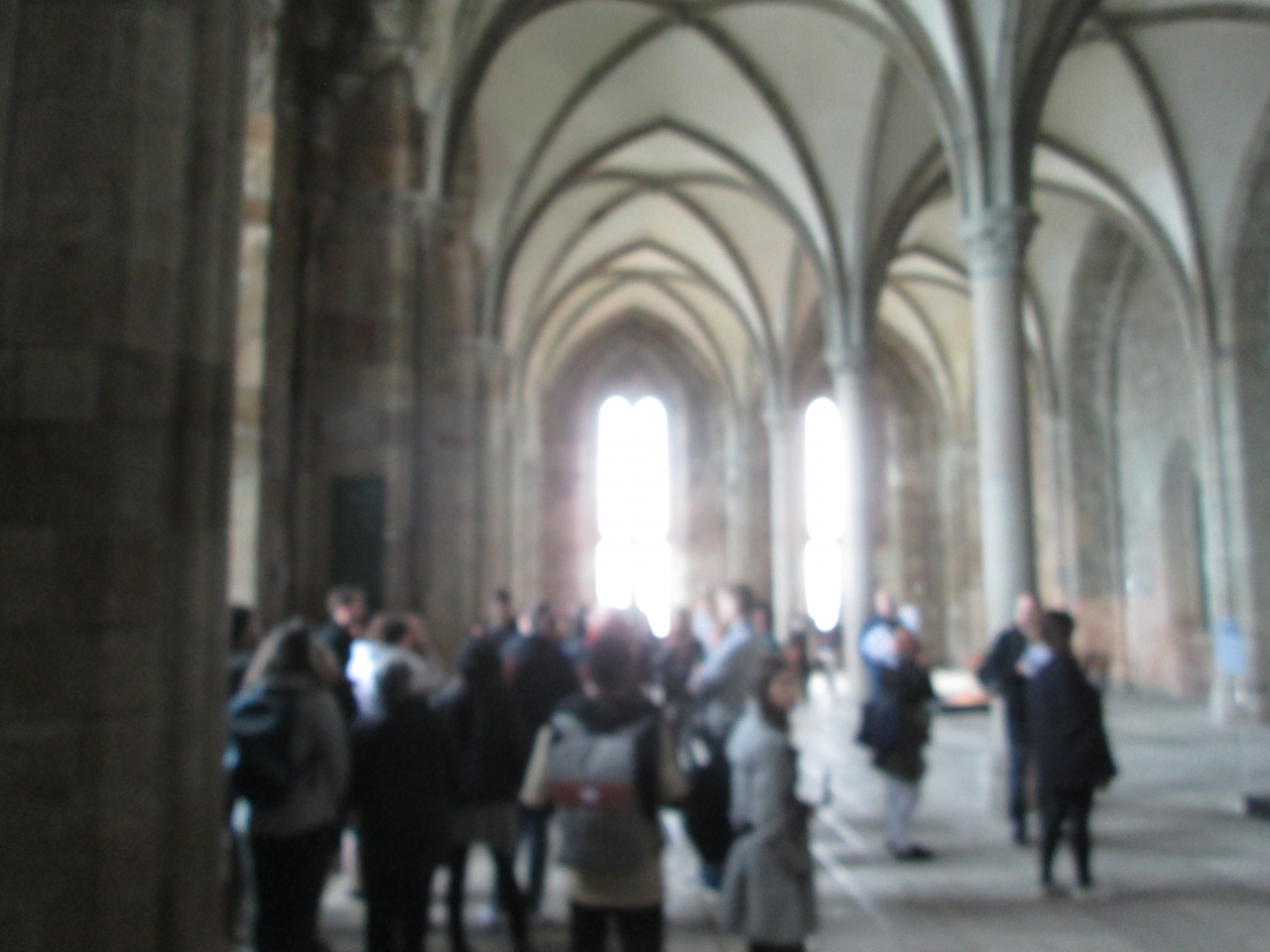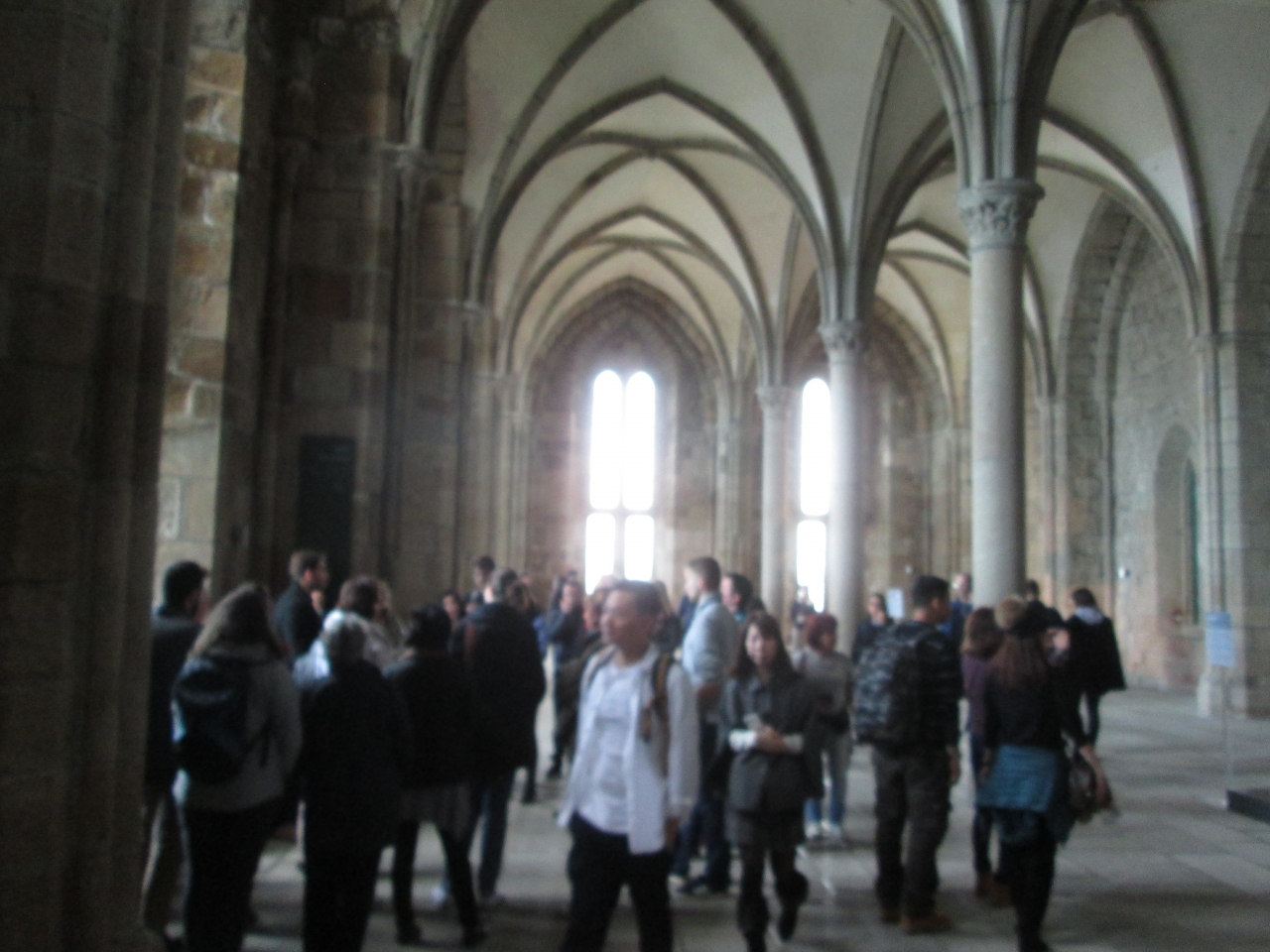 モンサンミッシェル修道院のなかにある見どころのひとつです。食堂の下に位置し大切な来客のために使われた場所のようで、天井が高かったです。葉飾りが彫られた優美な円柱、天井のアーチが美しいゴシック最盛期の様式を取り入れているのが印象的な部屋でした。