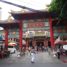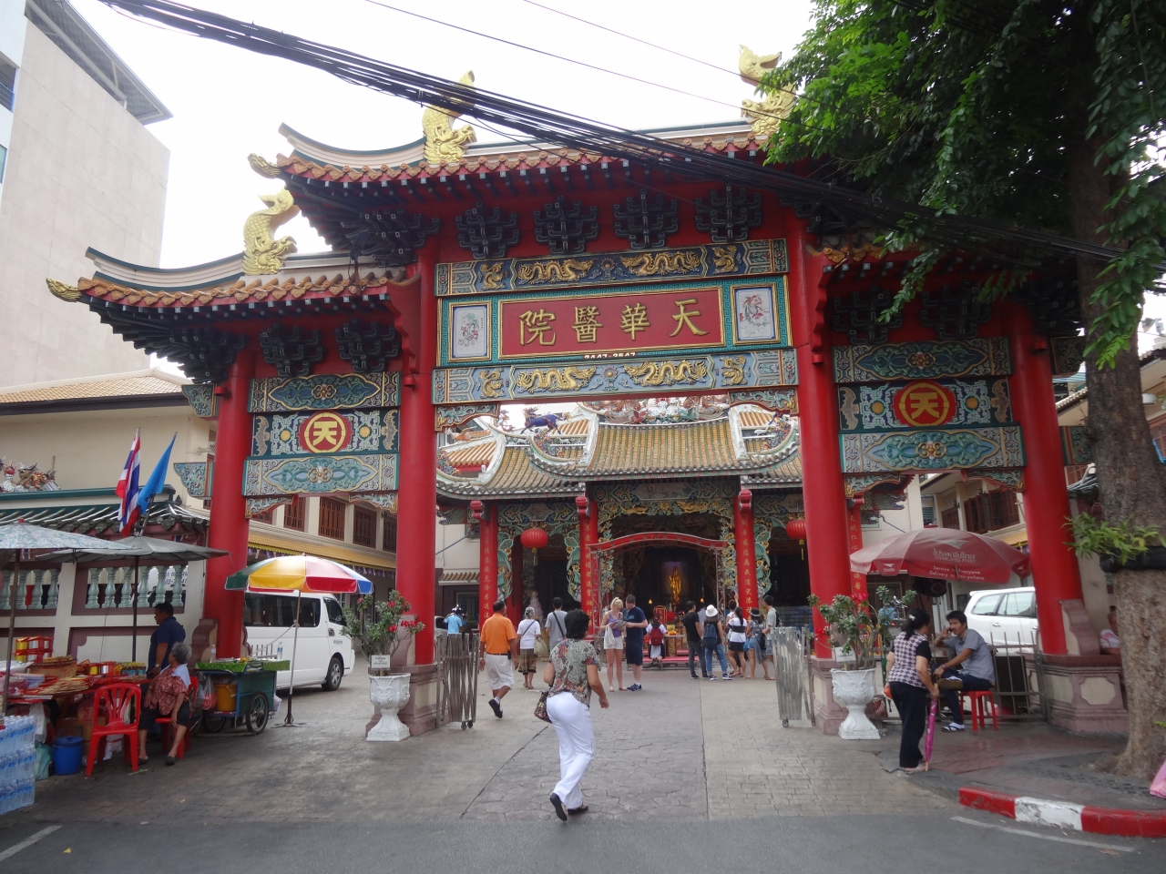 バンコクのチャイナタウンの中心・ヤワラート通りの中華門近くにあります。中華寺院らしい派手装飾の門がありますのですぐにわかります。こちらは寺院でもあり病院でもあるといった方がわかりやすかと思います。寺院では熱心に祈る地元の人たちを見ることができます。中華街らしいスポットですね。