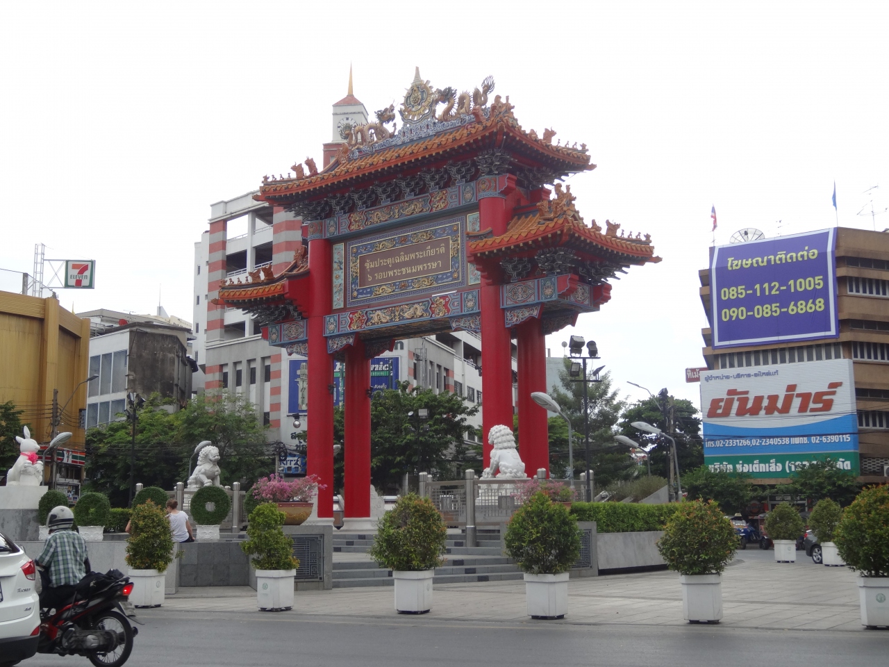 バンコク中華街の入口付近のロータリーに建つ巨大な門です。まさに中華という雰囲気の朱色の門は巨大で目を惹くものがあります。この門を目当てに行くというよりは、ホアランポーン駅方面から中華街へ歩いていく途中にありますので、併せて観光するのが良いかと思います。