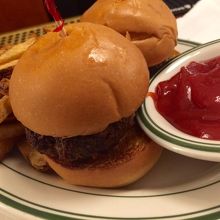 PUPUといわれるおつまみはどれも美味しかったです。7ドルのステーキスライダー(ステーキサンド)はボリューム満点です。