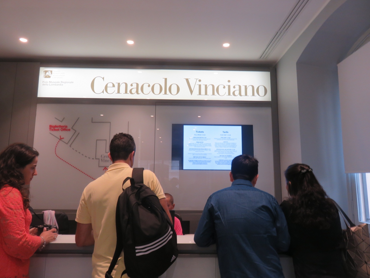 最後の晩餐のチケットは皆様の情報通りにネット予約は不能状態・・電話してまでもと思いながらも、見れるものならみたいという願望はありましたので、2日滞在の2日目の朝に窓口に訪れてみた。