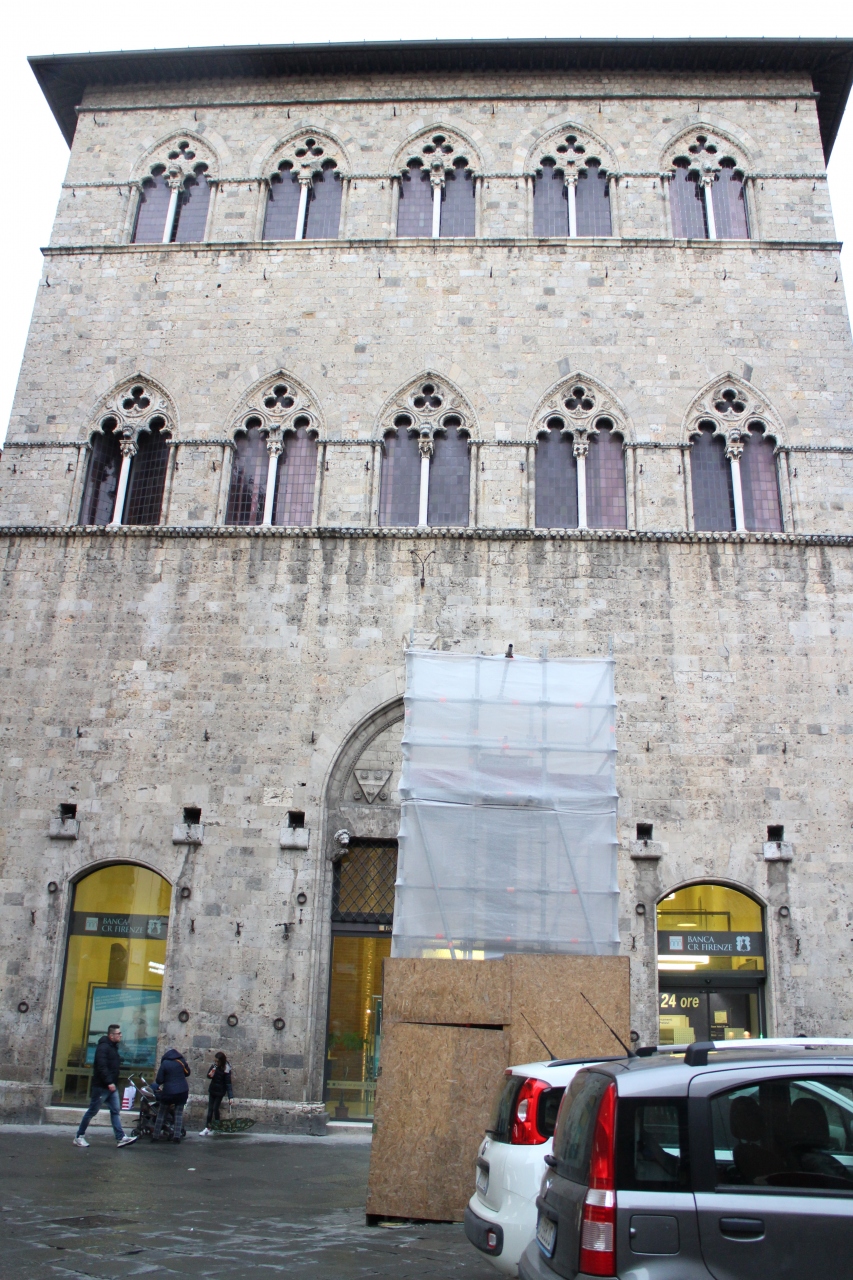 この広場に面して建てられている「トロメイの館」シエナ市内では最も古いものだそうです
