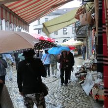 短い坂道の両側にある土産屋