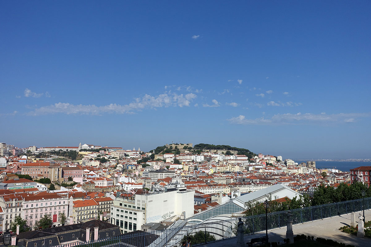 リスボンの町並みを一望できる展望台で、個人的にはリスボンの中で一番のお気に入りです。リスボンの街をはさんで対面にはサンジョルジェ城が見えます。サンジョルジェ城からの展望も好きです。ケーブルカーで行けばすぐ脇まで行けます。歩いても悪くないです。昼はもちろんのこと、夜景も良いですよ。