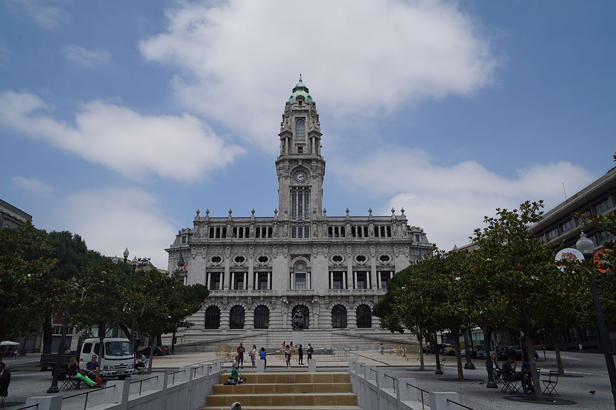 サン・ベント駅から北へリベルダーデ広場の坂を上った先にあります。高い時計台が目印で駅からも見れます。坂はそれほどキツくはありません。駅付近は観光客向きのお店がたくさんありますが、市庁舎付近はそうでもないので特に観光名所というわけではありませんが、一つのシンボルとして見ておかれると良いと思います。