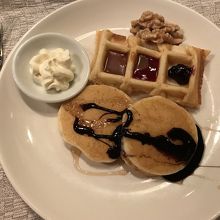 パンケーキとワッフルも目の前で焼いてくれ童心に帰れました。笑