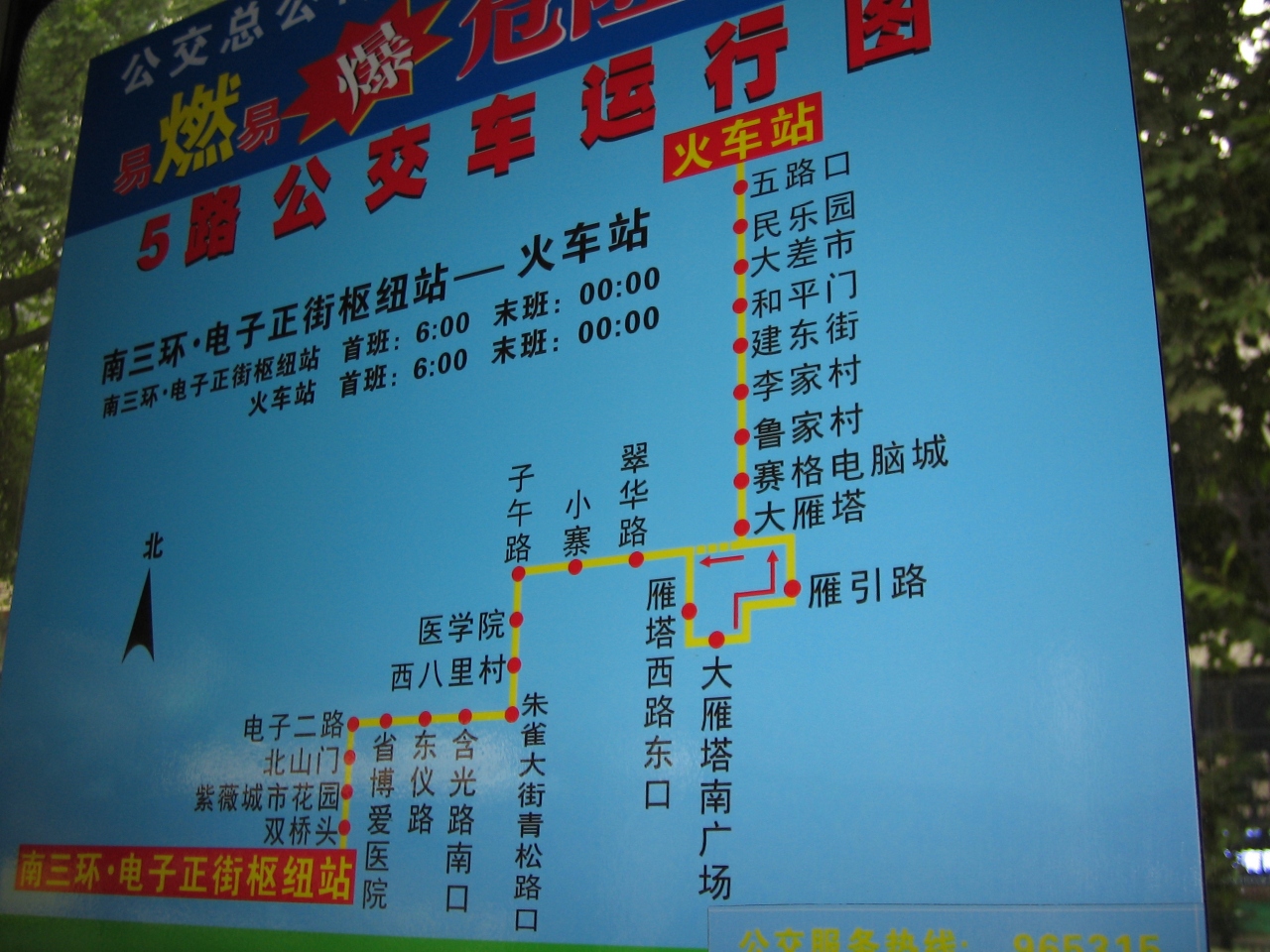 兵馬俑の観光後、西安駅近くから出ている5路公交車運行のバスに乗り目指しました。