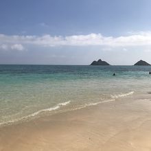 カイルアビーチを後にしてラニカイビーチへ。駐車場はありません。白い砂と透明な海に光が反射してとにかくまぶしい!!とってもキレイな海でした。光を遮る物がないので、日焼けをしたい方、欧米の方?が多い印象でした。