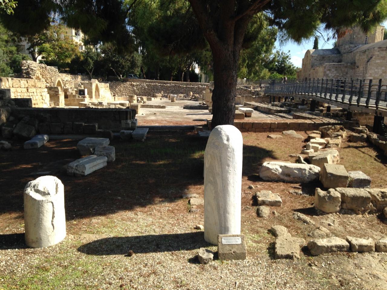 聖キリヤキ教会の庭にある白い円柱で前にプレートがあります。パウロが縛られた柱の様です。教会の横の柱の数々の方が目立ちますが、聖パウロの柱は教会の左側にある荒れ果てた感じの所にあります。観た感じだと新しい柱のように見えます。