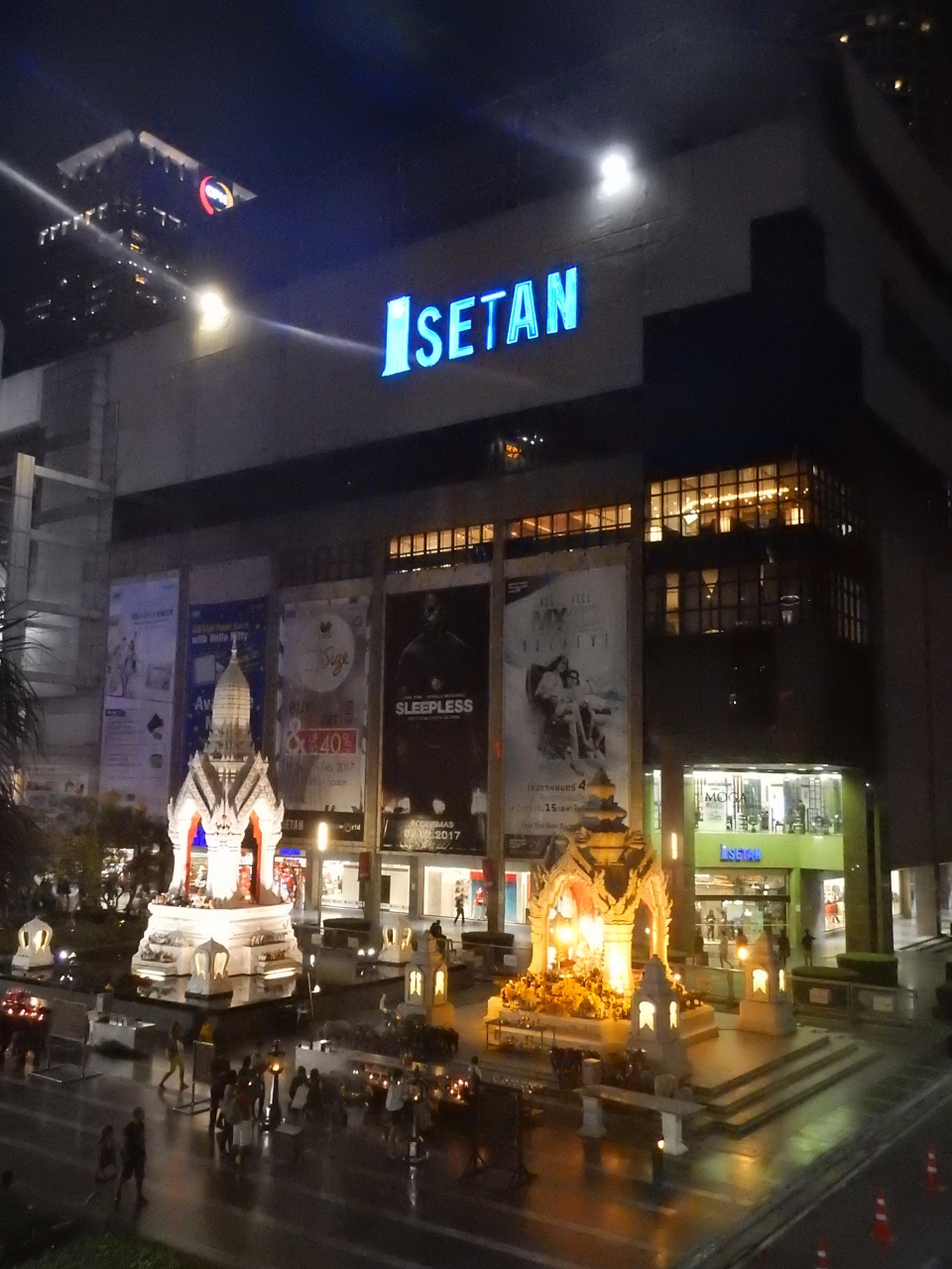 セントラルワールド前からプラチナムファッションモールへと続く歩道橋からプラ・ピッカネート(学問・商業の神様)。プラ・トリムルティ(縁結び・恋愛の神様)を見ることができる。地上から見るのとは視線が異なるので新鮮な感じだ。
