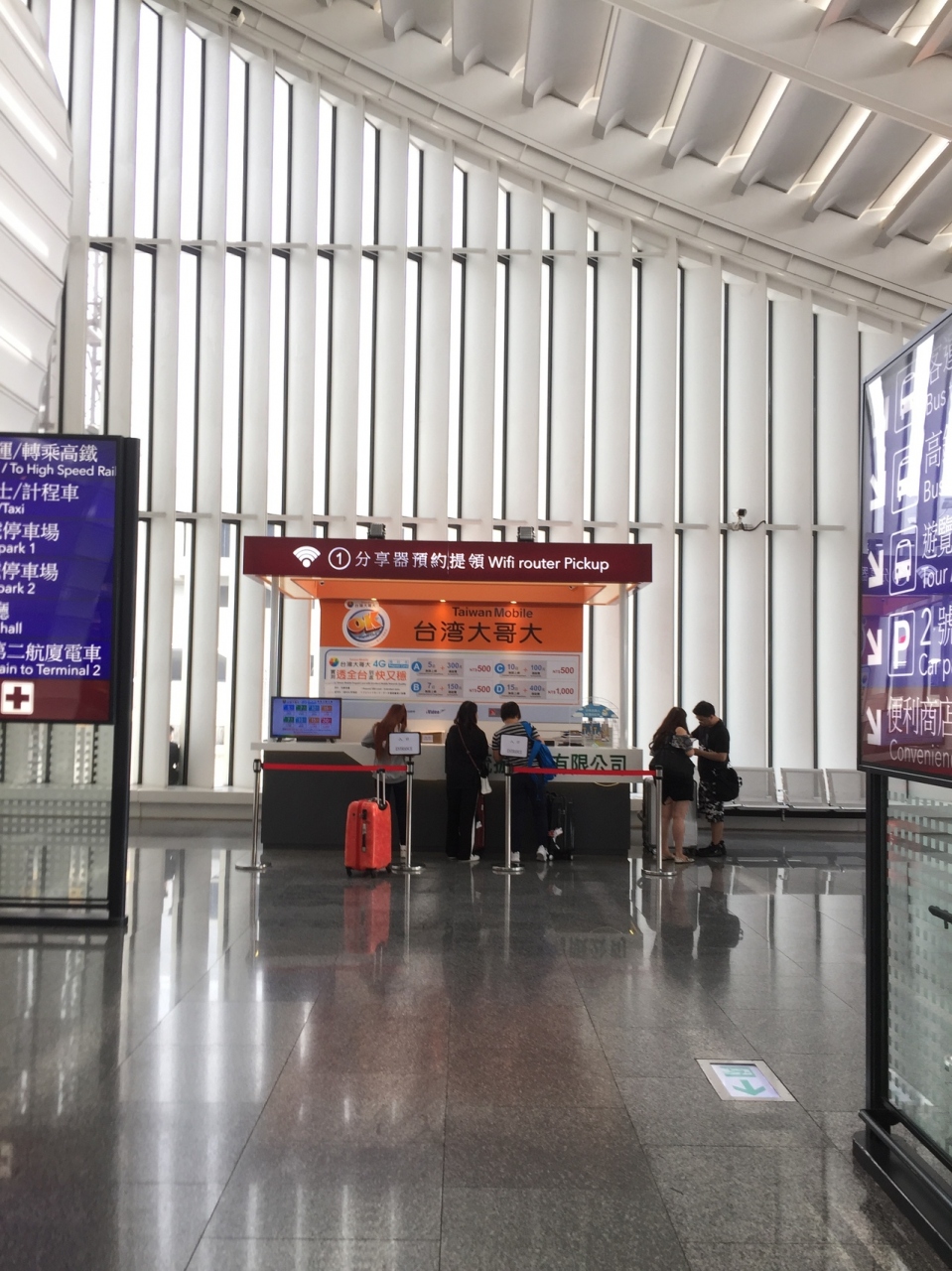 いつも桃園第二ターミナル利用してるけど、LCCのため、第一ターミナルへ。香港からのファイトも第一だし、LCCも第一になるので、入国検査では大変混雑。早朝でもありえないくらい人々。時間の余裕を持ったほうがいいんです。第ニとくらべて、通信会社の人カウンターが非常に多い。入国検査入る前、到着ホールもある。